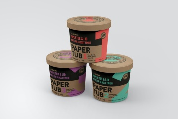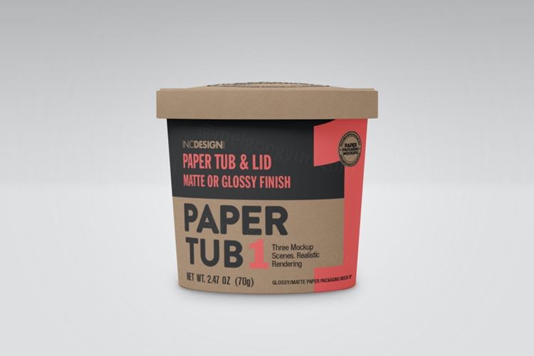 图穷联素材库 » 带盖包装模型的光滑或哑光纸桶纸盒样机(PSD)