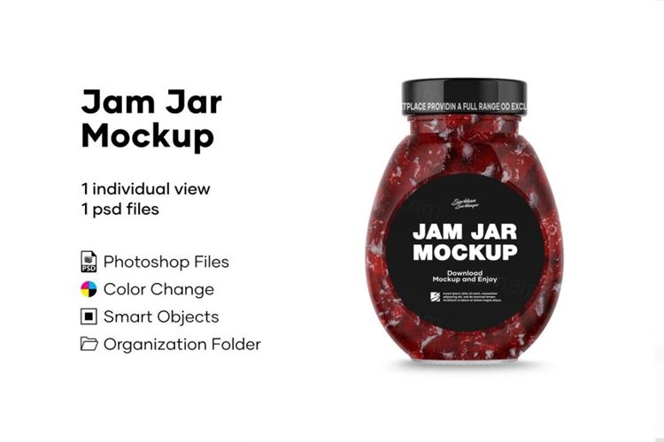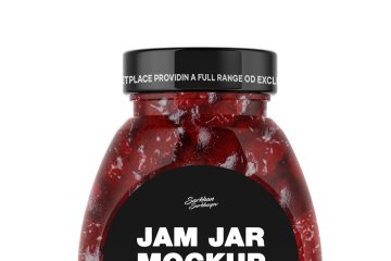 图穷联素材库 » 草莓酱透明玻璃罐包装标签设计样机