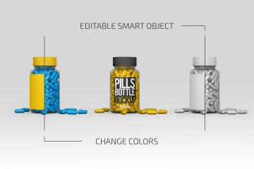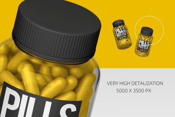 图穷联素材库 » 透明药丸瓶标签设计样机集
