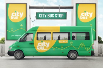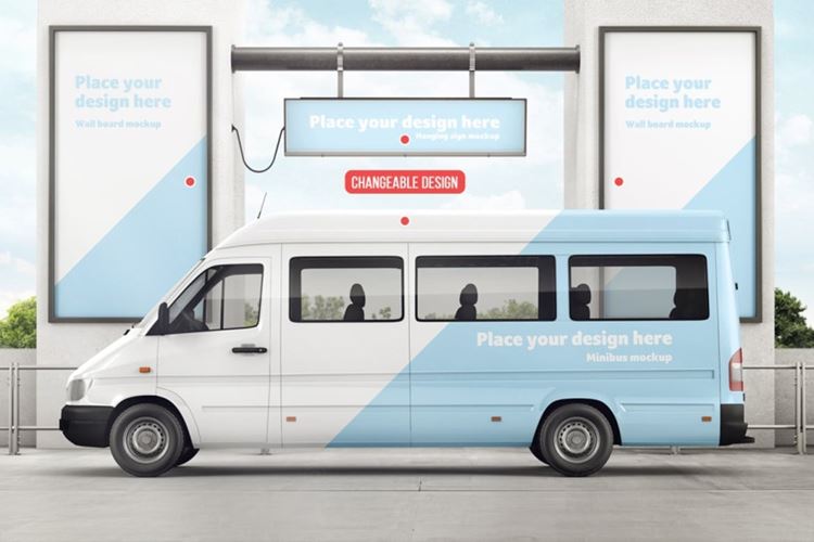 图穷联素材库 » 少见稀有的小公交车中巴班车车体广告公交车站广告VI设计