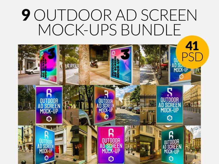 图穷联素材库 » 户外灯箱海报广告牌展示效果图样机套装
