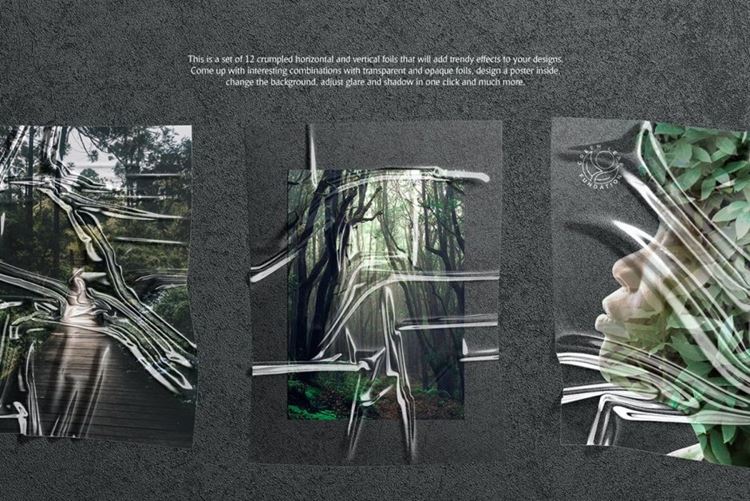图穷联素材库 » 透明皱纹塑料箔胶膜海报效果图展示样机