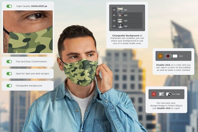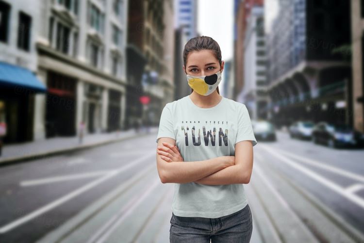 口罩T恤设计套装样机下载(PSD)