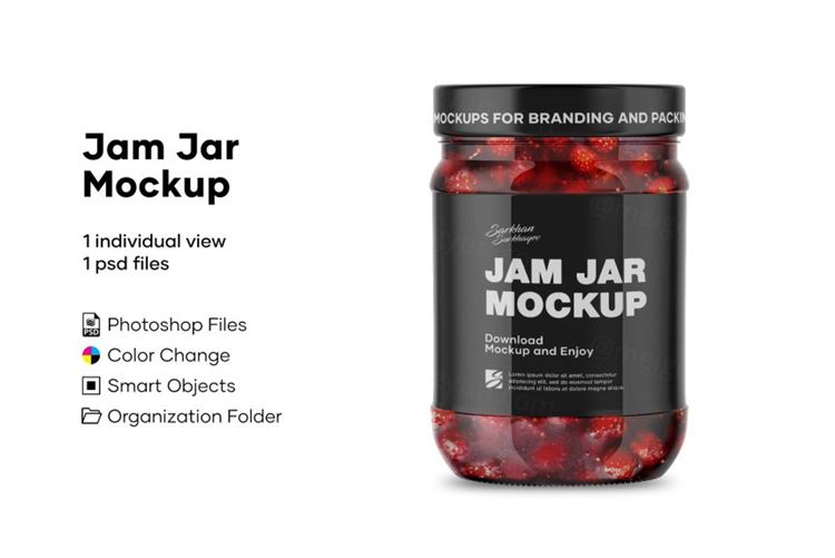 图穷联素材库 » 无花果果酱透明玻璃罐包装标签设计样机