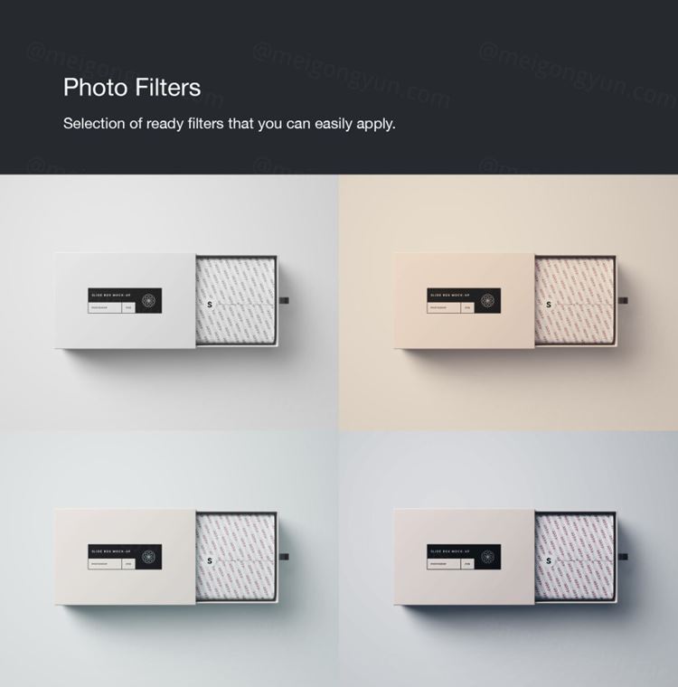 图穷联素材库 » 矩形抽屉式包装盒礼品盒包装设计效果图样机 Rectangle Slide Box Mockup