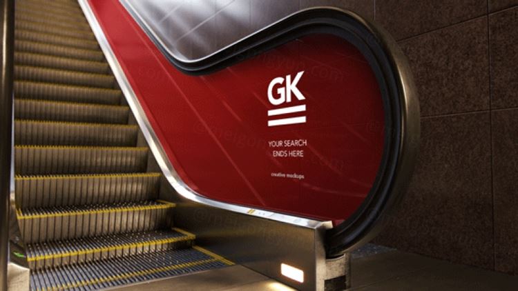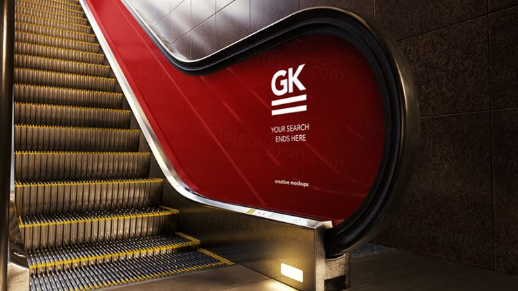 地铁商场自动扶梯灯箱广告设计提案样机PSD模板 3D Escalator / Lightbox Mock-up