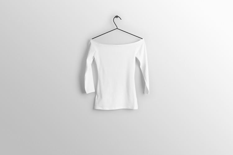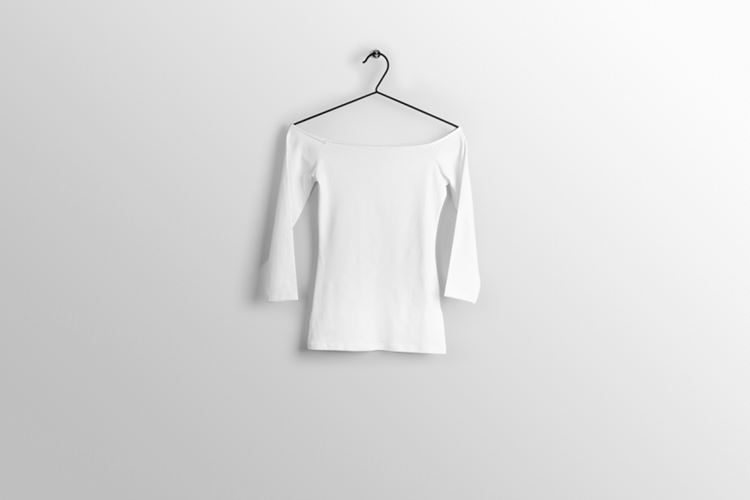 图穷联素材库 » 女士七分袖露肩性感T恤服饰设计品牌提案样机模板 Mockup clothing