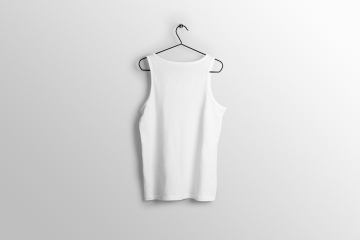 图穷联素材库 » 男士白色无袖T恤背心设计展示样机提案PSD模板 White t-shirt male without sleeves