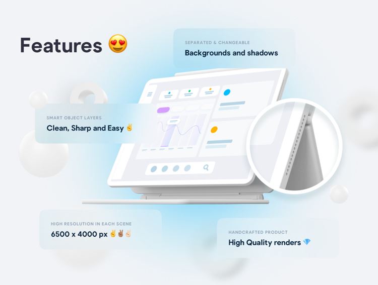 图穷联素材库 » 超高分辨率苹果iPad白模网页UI设计提案样机模板 iPad Pro Clay Mockups