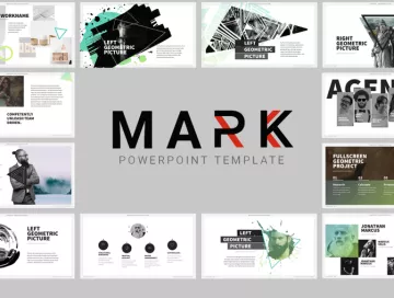 强大且富有创意的时尚现代商务主题演讲幻灯片演示文稿Mark03 Powerpoint