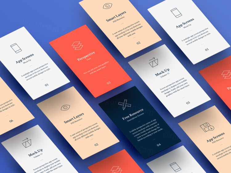 图穷联素材库 » 优雅透视平铺名片模型PSD贴图模板Perspective App Screens Mock-Up