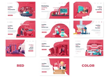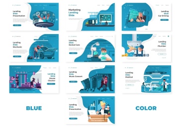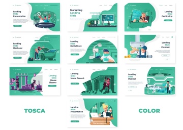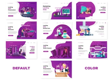 5色手绘等距像素可编辑插图插画矢量元素演示文稿幻灯片Landing Slide Powerpoint T...