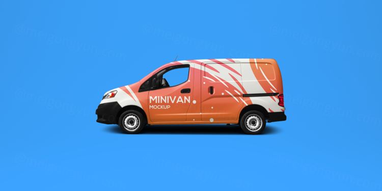 图穷联素材库 » 小型货车车身广告PSD贴图模板Minivan Mockup