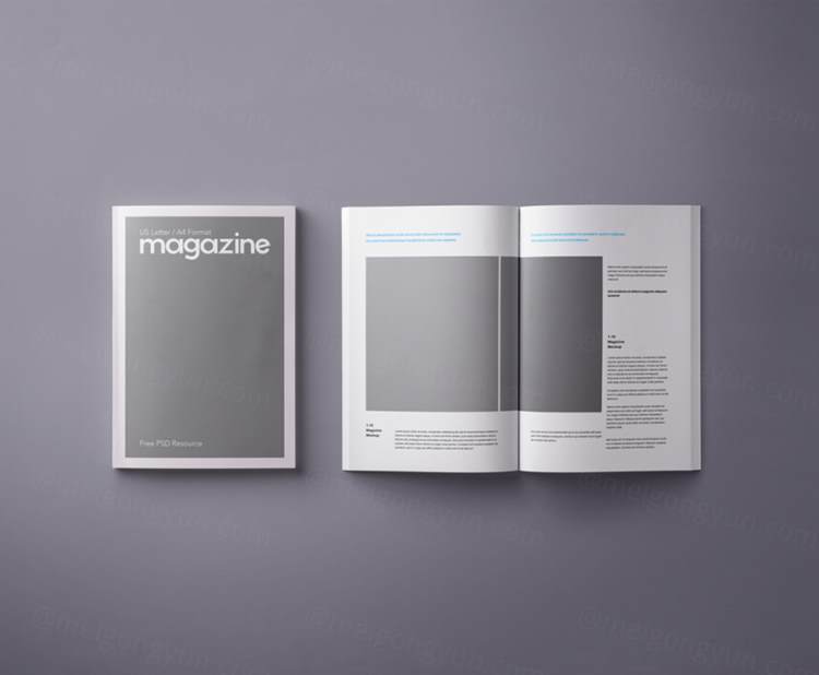 图穷联素材库 » A4书籍杂志模型PSD贴图模板Psd Magazine Mockup Template US A4