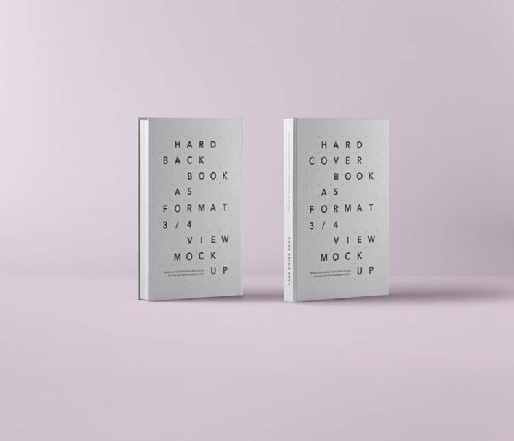 精致书正面和背面贴图PSD模板Psd A5 Hardcover Book