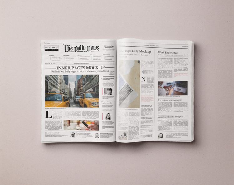 图穷联素材库 » 翻开的书籍杂志模型PSD贴图样机Daily Newspaper Psd Mockup