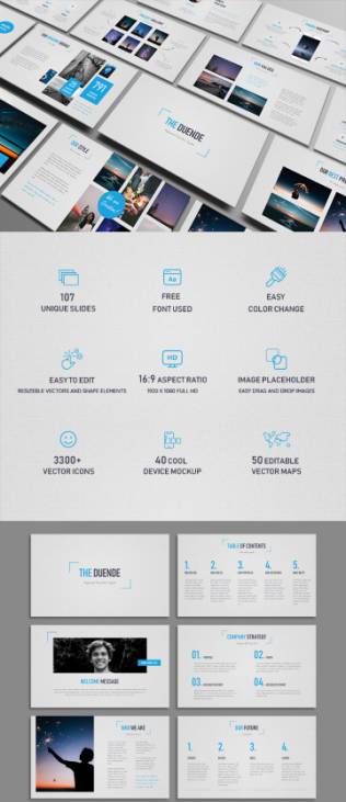 图穷联素材库 » 时尚独特多用途Duende(明亮版)ppt模板素材 Duende Light Powerpoint Template
