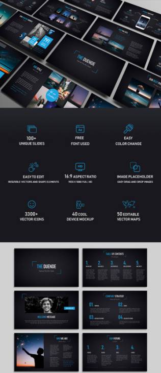 时尚独特多用途Duende(暗黑版)ppt模板素材 Duende Dark Powerpoint Template
