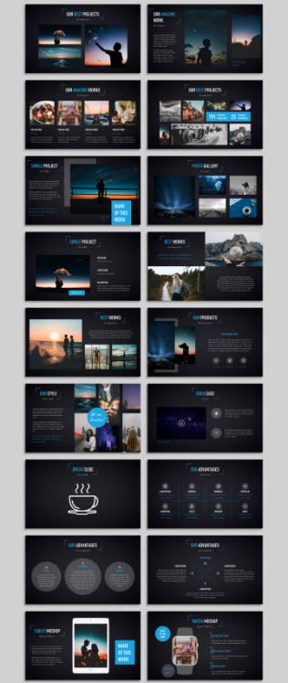 图穷联素材库 » 时尚独特多用途Duende(暗黑版)ppt模板素材 Duende Dark Powerpoint Template