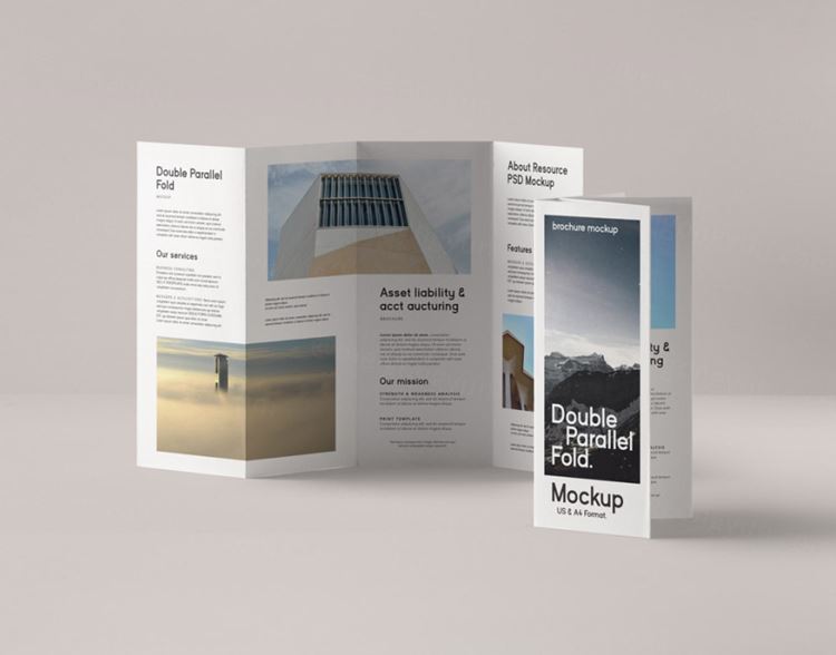 图穷联素材库 » 三折页贴图PSD模板Double Parallel Fold Psd Brochure