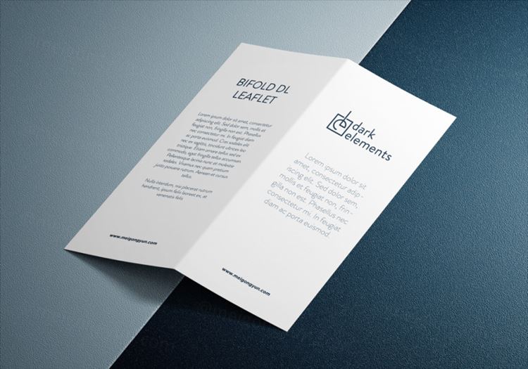 图穷联素材库 » 透视折页模型PSD贴图模板Dark Elements / Bifold DL leaflet mockup