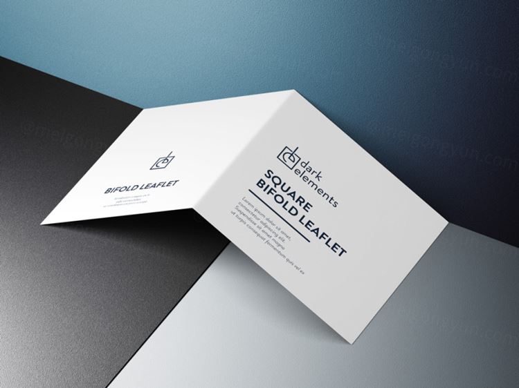 封面封底折页模型Dark Elements / Square bifold leaflet mockup