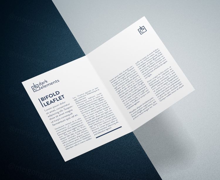图穷联素材库 » 折页模型PSD贴图模板Dark Elements / Bifold Leaflet Mockup