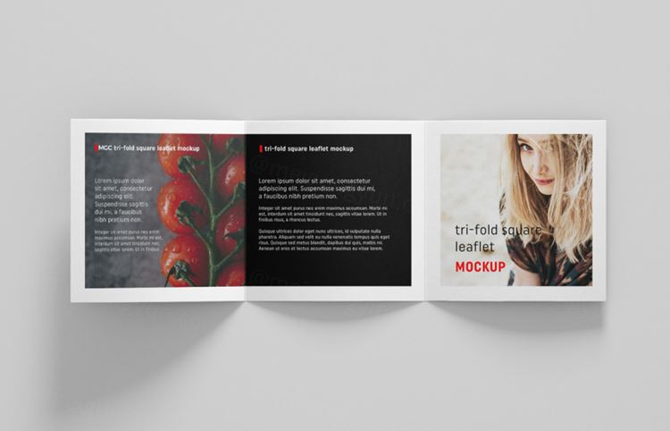 图穷联素材库 » 三折页传单设计贴图展示模板 Square trifold leaflet mockup
