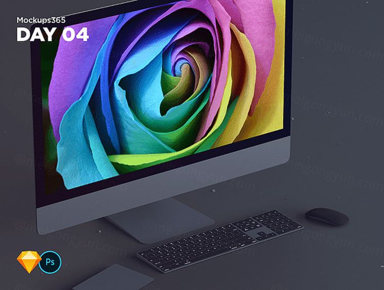 图穷联素材库 » Apple苹果电脑iMac Pro显示设备贴图样机透视图模型Mockups 04