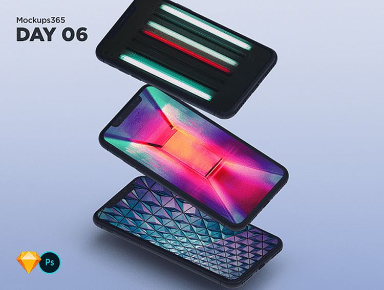 图穷联素材库 » iphone X苹果手机显示设备贴图样机透视图模型Mockups 06