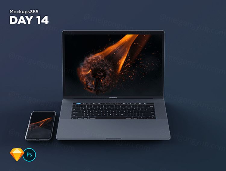图穷联素材库 » Macbook Pro苹果笔记本电脑显示设备贴图样机透视图模型Mockups 14