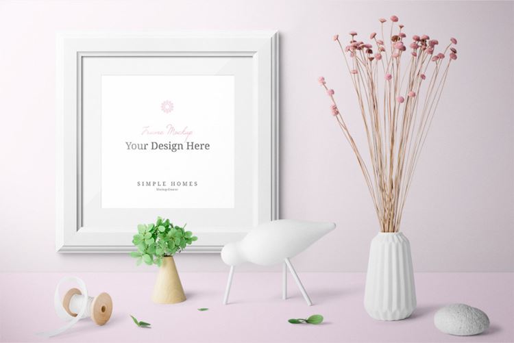 图穷联素材库 » 鲜花花卉丝带花瓶家居装饰相框植物贴图样机模型Simple Homes Mockup Vol 05