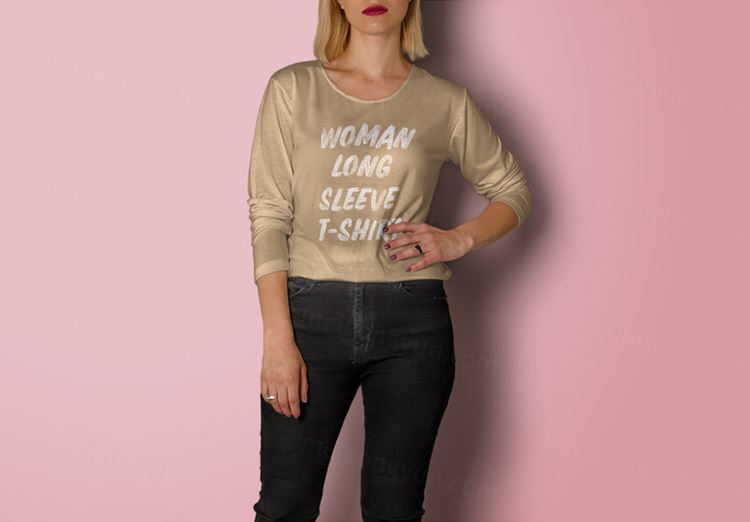 图穷联素材库 » 女士长袖T恤设计提案贴图展示模版 Psd Woman Long Sleeve T-Shirt Mockup