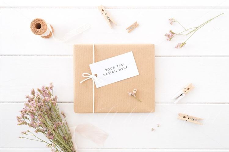 图穷联素材库 » 简约主义风礼品标签样机 styled stock image