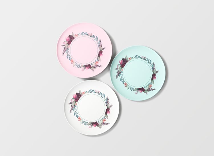 图穷联素材库 » 盘子碟子顶视图场景贴图展示模版 Overhead Plates Mockup