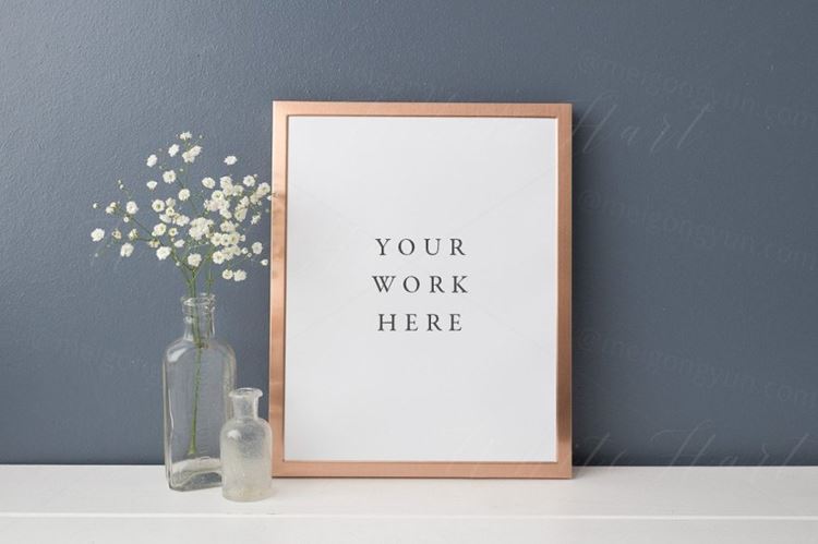 灰黑墙体背景室内相框画框样机模板Dark-wall-copper-frame-mock-up-8x10
