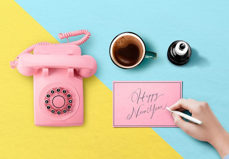 图穷联素材库 » 2019年最新粉红色品牌VI场景海报设计元素【电话机、咖啡、贺卡】