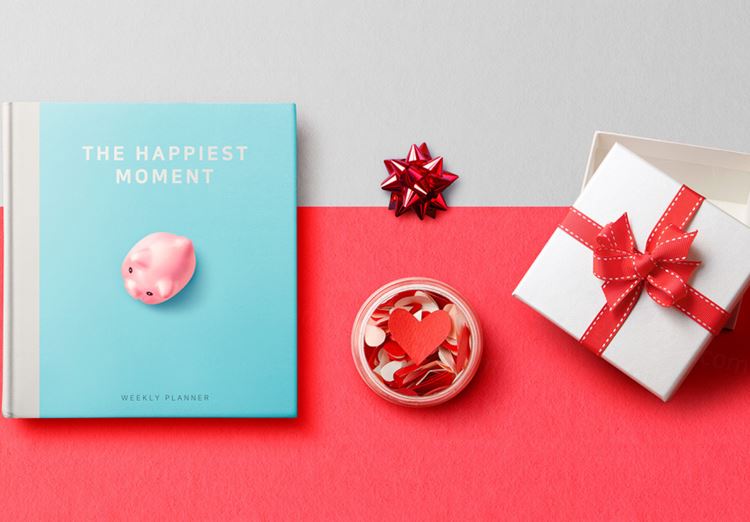 2019年最新粉红色品牌VI场景海报设计元素【礼品盒、笔记本】