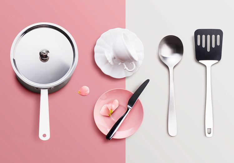 图穷联素材库 » 2019年最新粉红色品牌VI场景海报设计元素【厨房用品】
