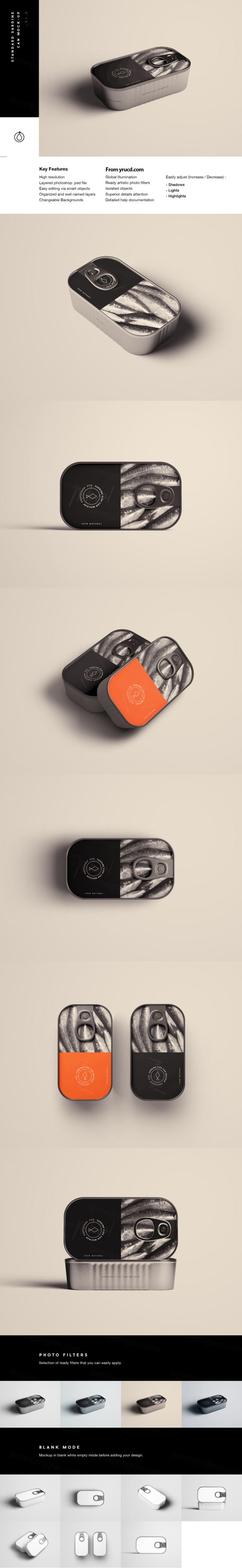 高品质的沙丁鱼罐头包装样机展示模型Sardine Can Mockup