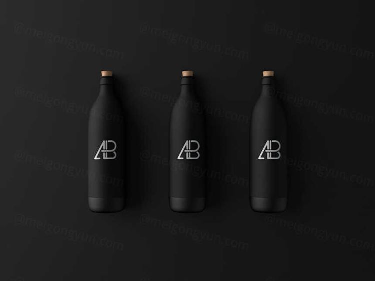 哑光黑色瓶子包装设计贴图样机模版 Matte Black Bottle Mockup