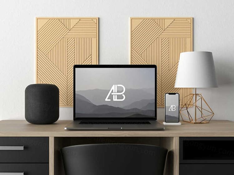图穷联素材库 » Modern Macbook Pro and iPhone X on Desk Mockup