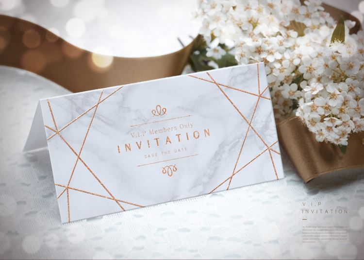 图穷联素材库 » 烫金邀请函蕾丝礼品卡场景样机展示PSD模版