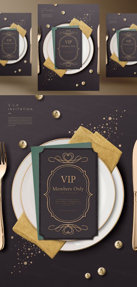 图穷联素材库 » 高级邀请函信封金箔礼品卡VIP卡场景样机展示PSD模版