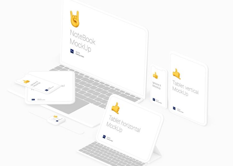 图穷联素材库 » 等距苹果设备白模场景样机模版 Smooth Isometric Devices