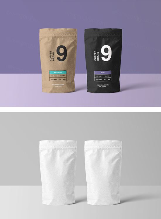 咖啡纸袋包装贴图展示模版 Paper Coffee Bag Mockup
