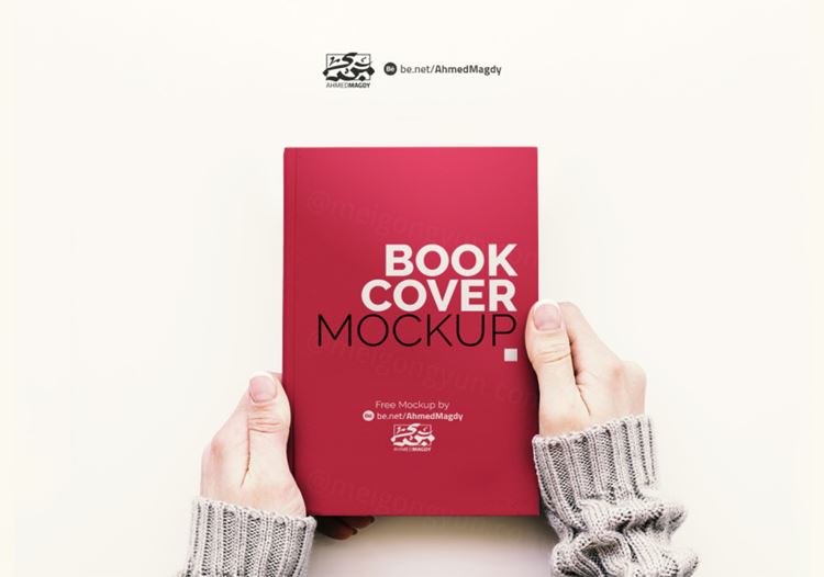 图穷联素材库 » 手持书籍封面场景样机展示PSD模版 Book Cover Mockup