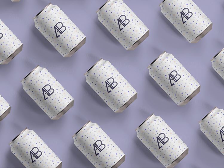 哑光等距视角易拉罐贴图展示模版 Matte Soda Can Top View Mockup