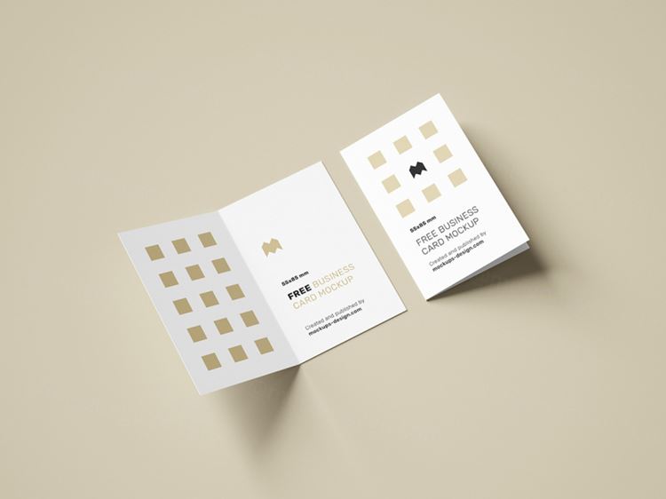 图穷联素材库 » 折页传单宣传提案贴图样机模版 folded business cards mockup / 85x55mm
