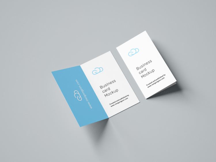 图穷联素材库 » 折叠样式名片设计贴图展示样机PSD模版 Folded business card mockup / 90x50 mm